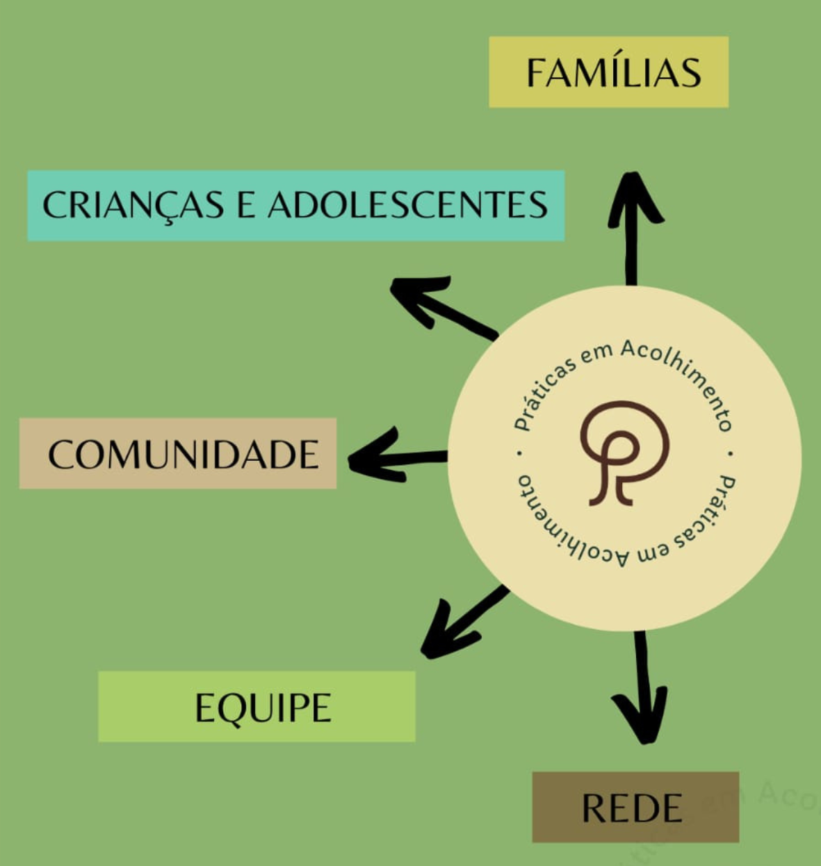 Para atuação em serviço de acolhimento, construí os 5 pilares da atuação neste contexto que englobam os processos de proteção e cuidado e que permitem organizar as práticas profissionais.