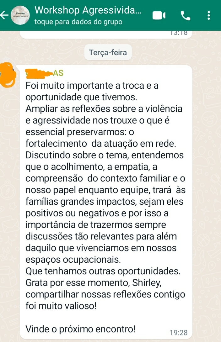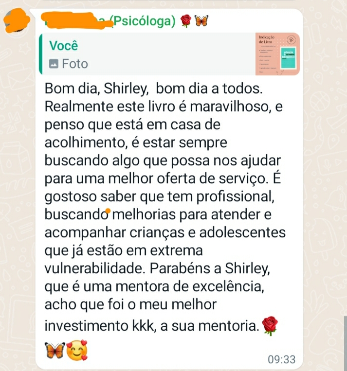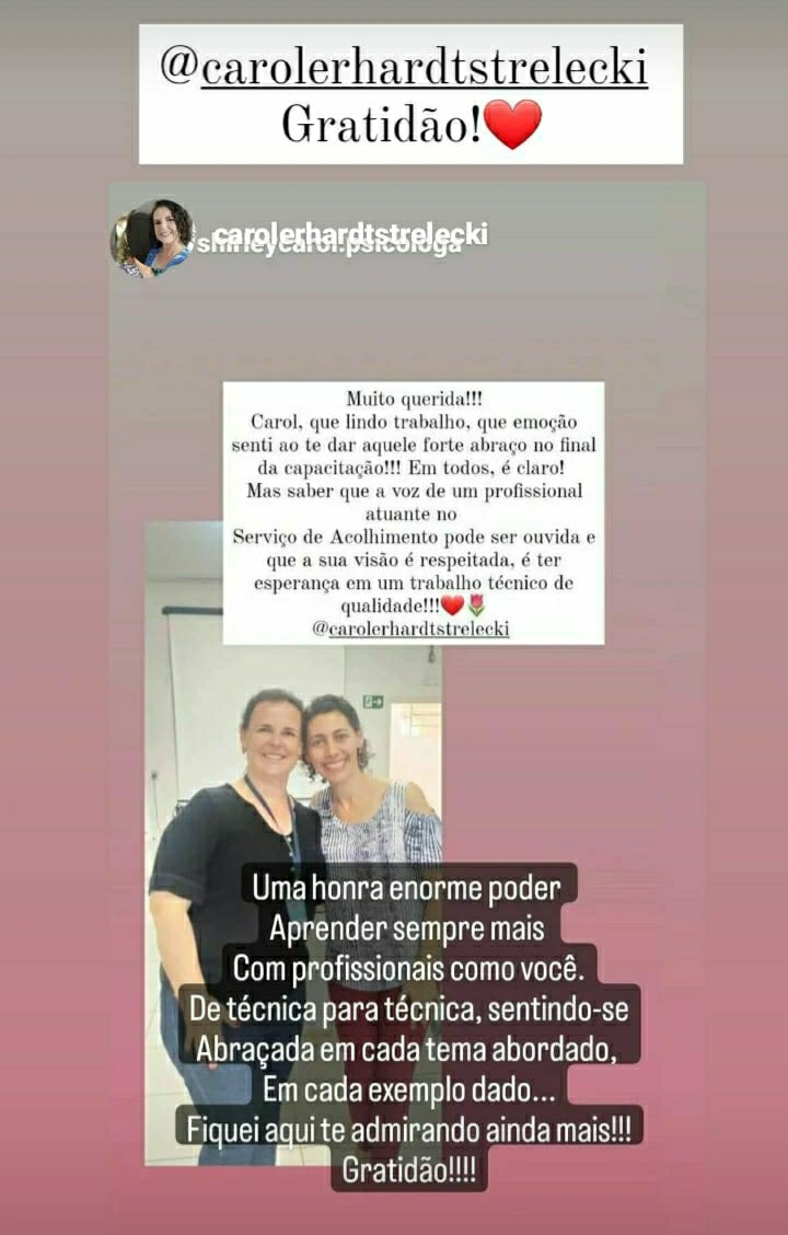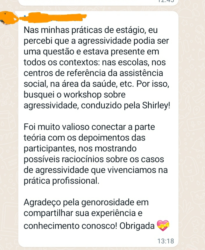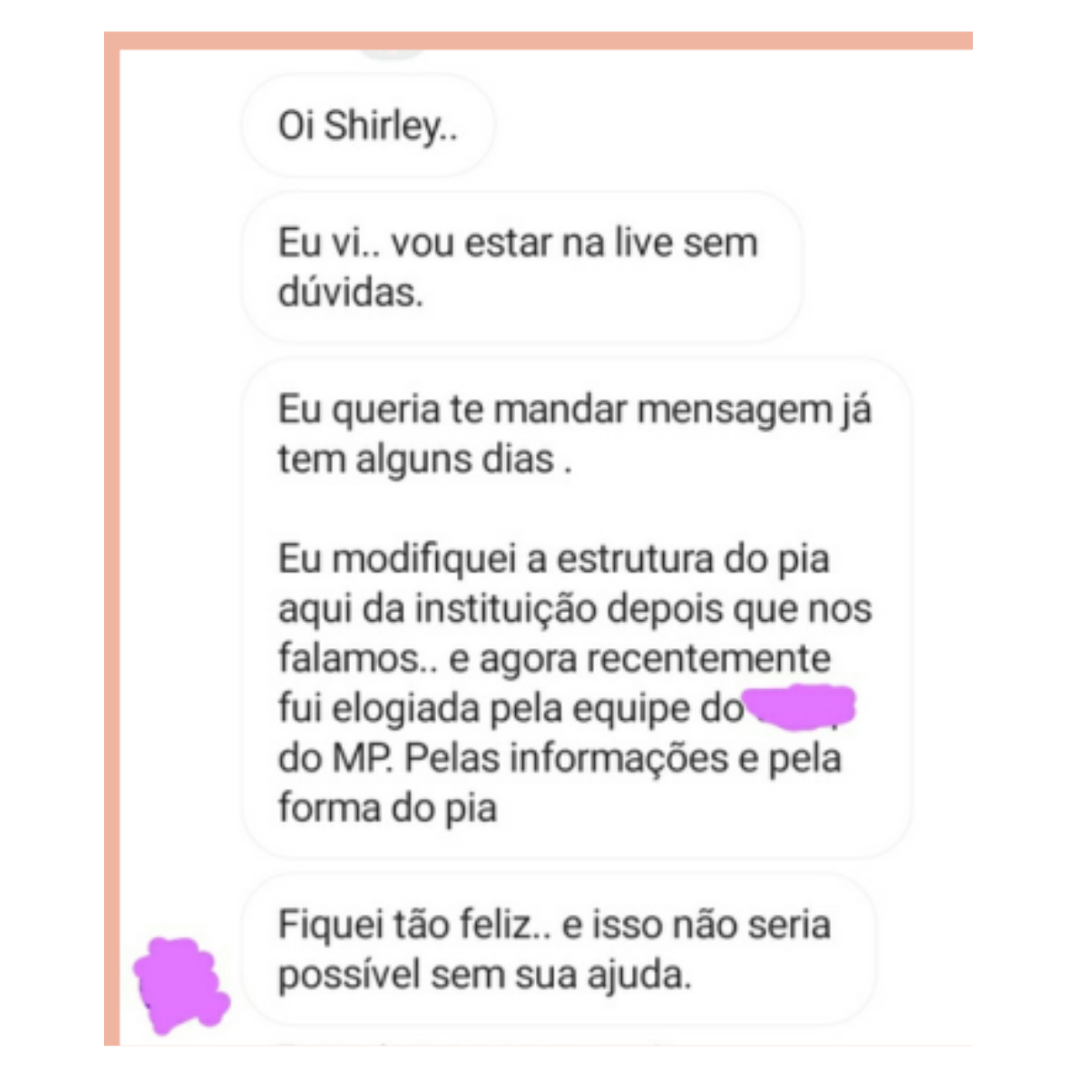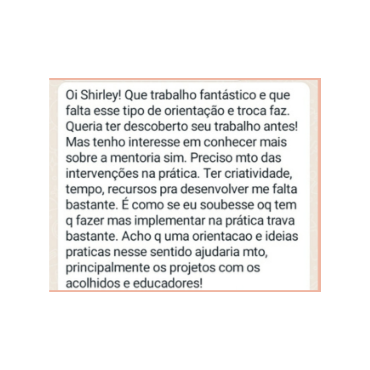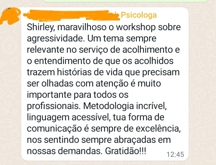 Confira acima os relatos e feedback’s de profissionais incríveis que venho acompanhando através de capacitações, supervisões,mentorias, grupos de estudos e workshop’s!