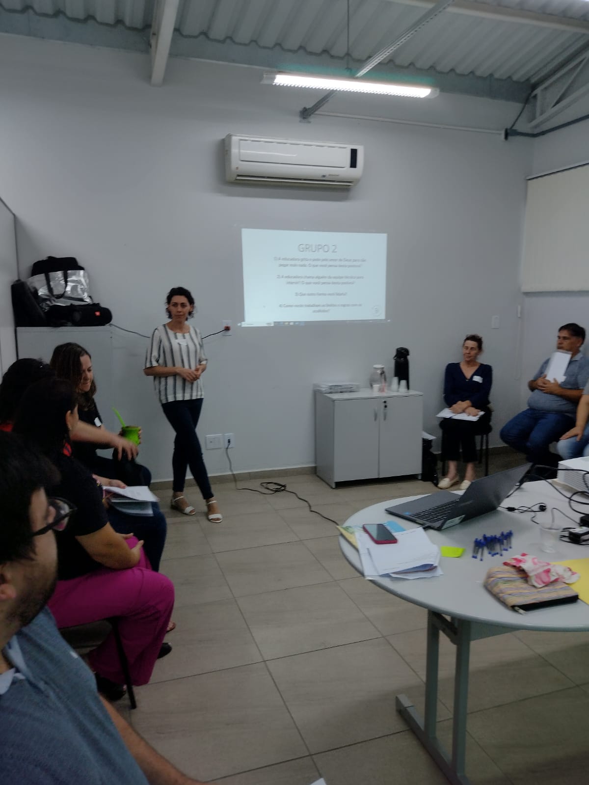 A capacitação sempre acontece de forma grupal, sendo possível para toda a equipe do serviço em conjunto ou para parte desta equipe se necessário. Os encontros de capacitação podem acontecer presencialmente ou on-line pelo Google Meet, sendo o número de encontros / horas conforme as necessidades dos profissionais ou serviços.